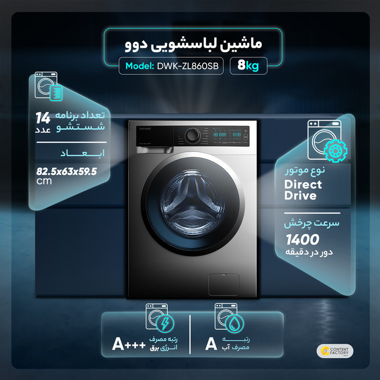 ماشین لباسشویی اتوماتیک دوو مدل DWK-ZL860SB ظرفیت 8 کیلوگرم