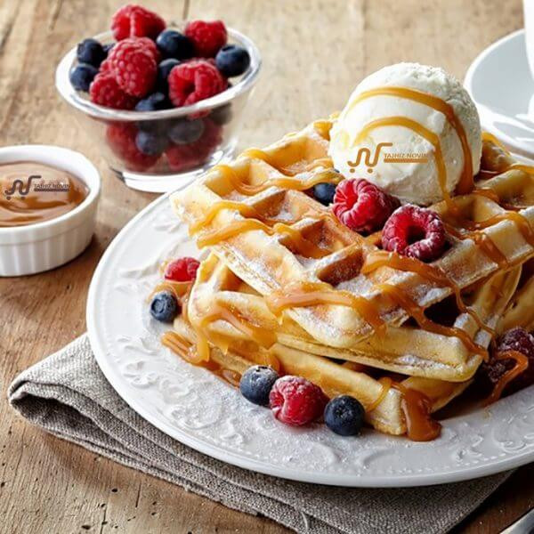 دو صفحه نچسب در بالا و پایین وافل ساز که پس از هربار پخت 4 عدد وافل مربعی شکل میدهد .