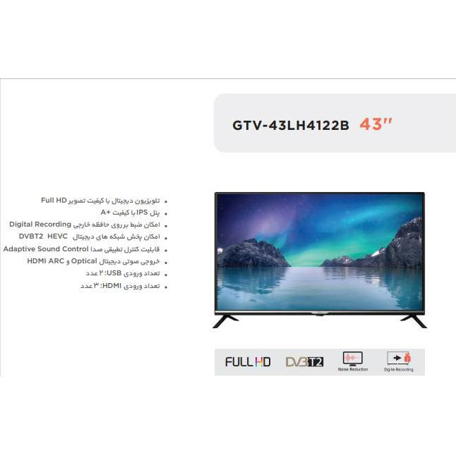 تلویزیون ال ای دی جی پلاس مدل GTV-43LH4122B سایز 43 اینچ