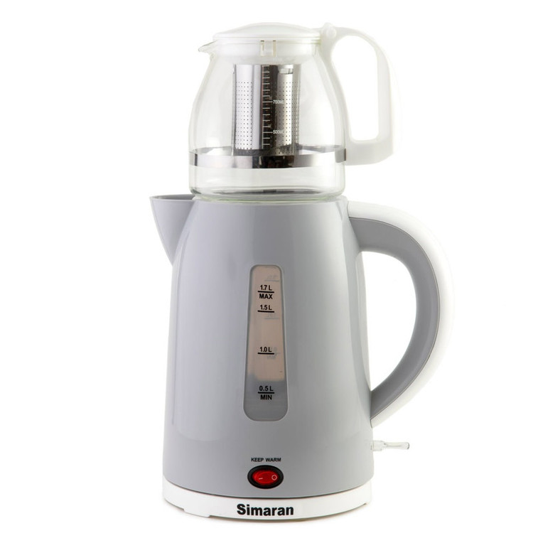 چای ساز سیماران مدل STM-815P با طراحی زیبا و شیک قادر خواهد بود تا هر نوع چای را با طعم واقعی آن برای شما آماده کند تا در هر لحظه از نوشیدن چای خود لذت ببرید. این چای ساز دستگاهی بسیار کارآمد، برای دم کردن چای به شیوهی کلاسیک است. این چای ساز با توان بالای خود بسیار سریعتر از چای سازهای مشابه خود آب را میجوشاند و همچنین میتوان آن را در موقعیت گرمنگهدارنده قرار داد تا مصرف انرژی آن کاهش یابد. در این وضعیت، دستگاه آب را در کمترین دما میجوشاند و از جوشیدن غیرضروری پیشگیری میکند. همچنین باعث میشود که چای، درون قوری داغ بماند و در مصرف انرژی صرفهجویی شود. برای ایمنی، ترموستات خودکار از دستگاه محافظت میکند. هنگامی که آب تمام شود، دستگاه خاموش شده و پس از اضافه کردن آب، چای ساز آغاز به کار میکند. این چای ساز دارای صافی آب است و اتصال کتری به پایه بهصورت بیسیم انجام میشود و کتری بر روی پایه قابلیت چرخش 360 درجه دارد. پلاستیک این دستگاه از مواد بسیار باکیفیت توتال فرانسه بوده و کنترلر المنت به کار رفته در این چای ساز از نوع اوتر انگلستان است. این دستگاه همچنین میتواند به عنوان یک کتری در آشپزخانه شما مورد استفاده قرار گیرد که در این حالت باید از درپوش سادهی ارائه شده همراه دستگاه استفاده کنید.