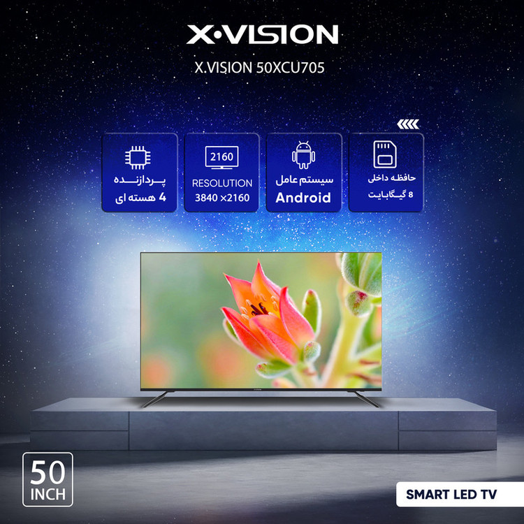تلویزیون ال ای دی هوشمند ایکس ویژن مدل 50XCU705 سایز 50 اینچ