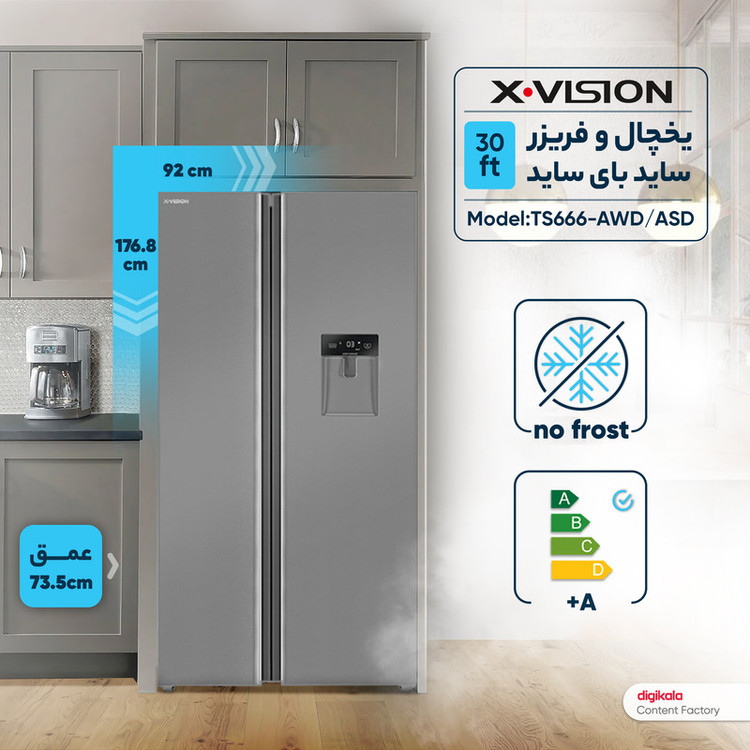 یخچال و فریزر ساید بای ساید 30 فوت ایکس ویژن مدل TS666-AWD/ASD