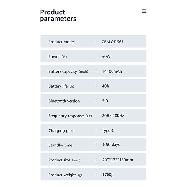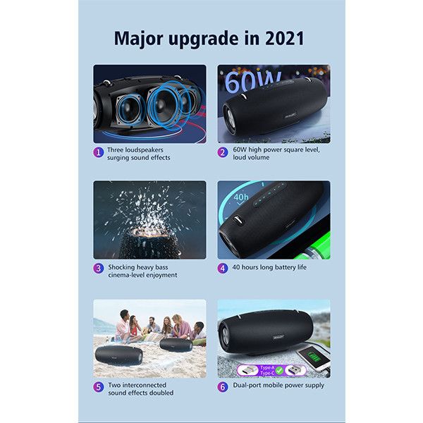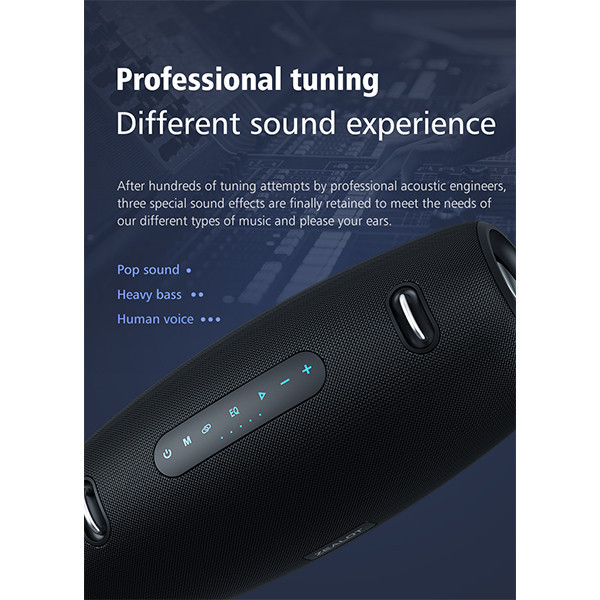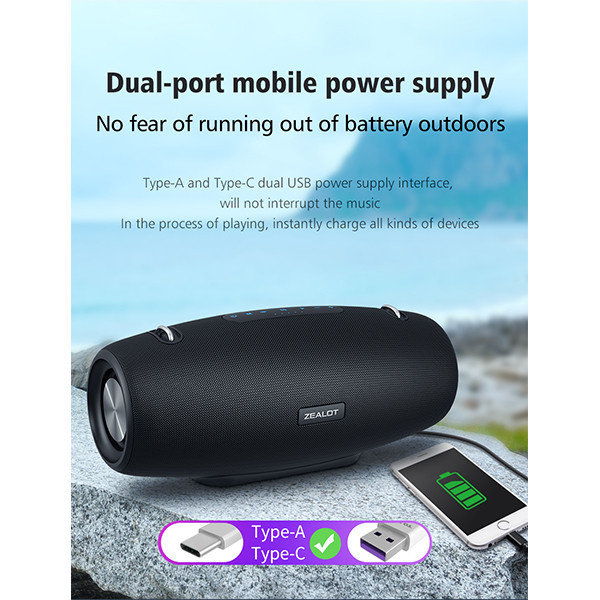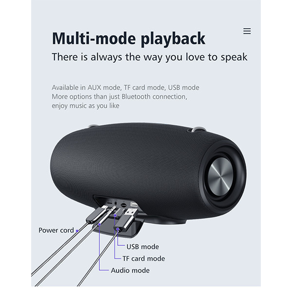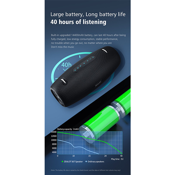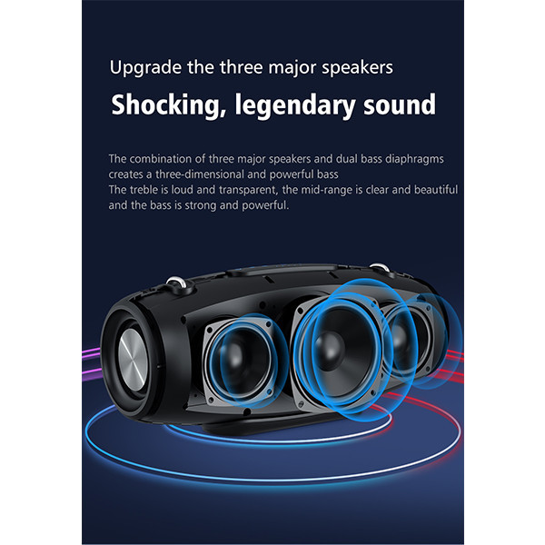 در کیفیت و توان خروجی این اسپیکر شکی نیست پس میریم سراغ بقیه خصوصیات آن ، اول از همه باید در مورد باطری داخلی اون صحبت کنیم ، باطری داخلی این اسپیکر 14400mAh است که در نوع خودس در این کلاس توان خروجی بی نظیر است.شارژ این باطری به وسیله ورودی تایپ سی انجام می شود که خود این مسئله نیز سرعت شارژ را بالا برده و این محصول را خاص کرده است.این محصول در برابر پاشش آب و گرد و غبار مقاوم است پس با خیال راحت در محیط های مرطوب یا دارای گرد غبار می توانید ازش استفاده کنید این محصول دارای پورت ورودی USB , TypeC , AUX و همچنین بلوتوث ورژن 5 می باشد که با بالاترین سرعت و کیفیت اقدام به اتقال صوت می نماید.این اسپیکر دارای میکروفن داخلی با کیفیت است که امکان پاسخگویی تماس را برای شما فراهم می اورد.وزن این اسپیکر 1700 گرم است و به راحتی قابل حمل و استفاده در محیط بیرون از خانه می باشد.همراه این اسپیکر بند شانه ای استاندارد ، کابل AUX و کابل شارژ می باشد.