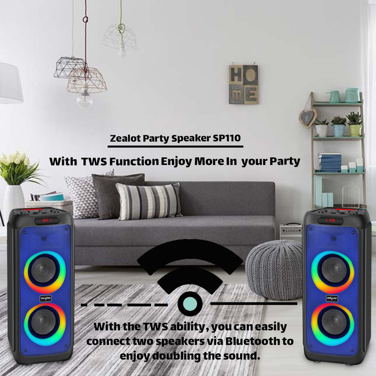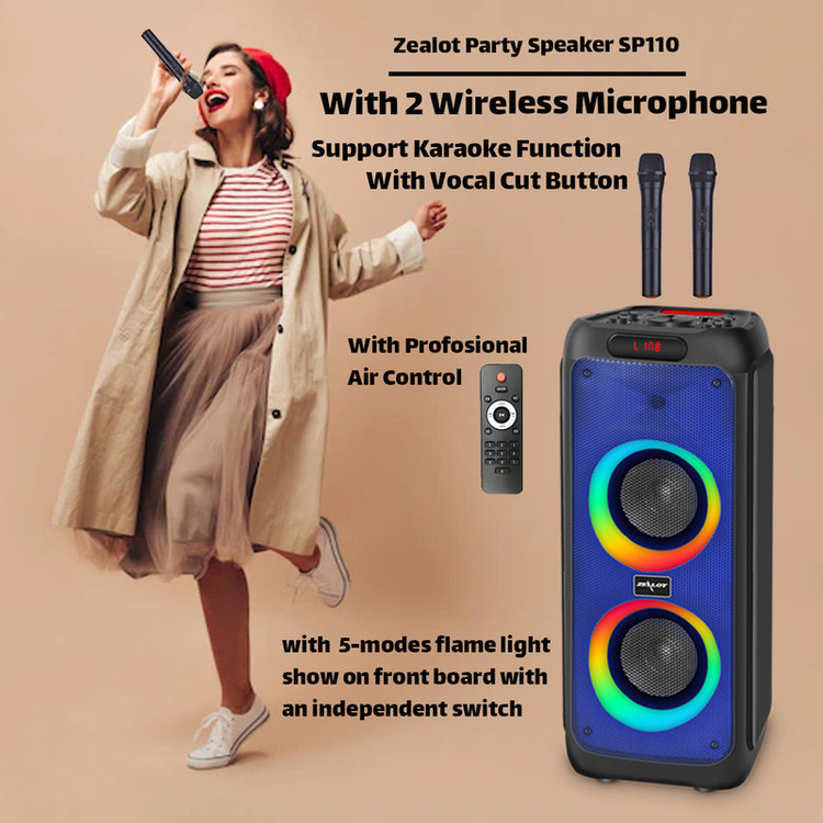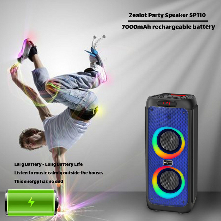 پارتی باکس بی نظیر زیلوت با پنل حرفه ای با مدل SP110 وارد بازار این گروه کالای جذاب شد.این پارتی اسپیکر دارای دو درایو اسپیکر 10 اینچ و یک عدد هورن توییتر 1.5 اینچ است که در مجموع 110 وات توان خروجی و 450 وات توان نهایی ایجاد میکند.این اسپیکر دارای بدنه با ترکیب سه گانه از چوب ، پلاستیک تقویت شده و فولاد مش شده است که زیبایی آن را چند برابر کرده است.با دو میکروفن بیسیم این اسپیکر به راحتی میتوانید استیج خوانندگی خصوصی خودتان را داشته باشید،این اسپیکر قابلیت حذف صداری خواننده برای قابلیت کاراوکه را دارا است. رقص نور این استیج بر عهده صفحه پخش نور 5 حالته این اسپیکر است که در روبرو اسپیکر قرار دارد که با نام فلم شناخته میشود تا استیج شما پر از نورهای رنگارنگ باشد و از مراسم های خود لذت دو برابر ببرید.این اسپیکر علاوه بر دو عدد میکروفن بی سیم دارای 2 ورودی مجزا میکروفن برای استفاده میکروفن سیم دار نیز است و همچنین یک ورودی مجزا برای اتصال گیتار به این اسپیکر نیز تعبیه شده است.